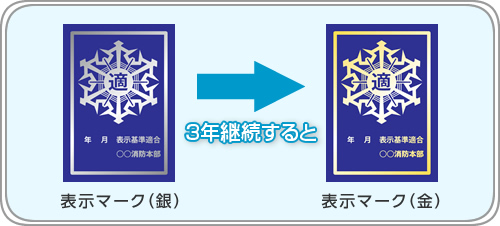 初期には有効期限が1年間の「銀」の表示マークで、3年間継続して認められると「金」の表示マークが交付されます。
